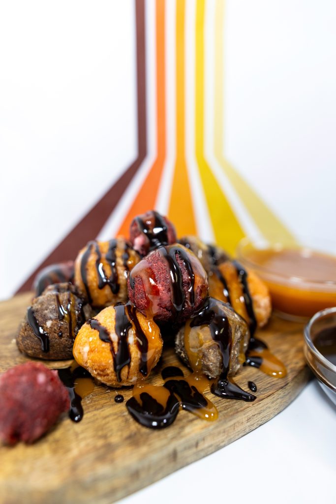 Through the month of October, we will be feature “Far Out Donut Holes”. On Fridays through Sundays, enjoy “Groovy Pretzels with Hip Fondue Dip” and “Peace, Love & Sloppy Joes”.